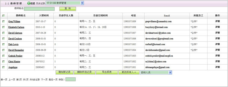 童虎教育培训软件能详细记录教师的各项信息,电话,简历,特长等,学生人数根据学生报名时所选教师,自动计算。
